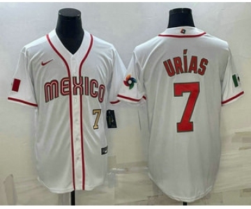 Men's Mexico Baseball #7 Julio Urias Number 2023 White World Baseball Classic Stitched Jersey3