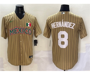 Men's Mexico Baseball #8 Enrique Hernandez Tan 2023 World Baseball Classic Stitched Jersey