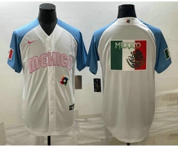 Men's Mexico Baseball Big Logo 2023 White Blue World Classic Stitched Jersey1