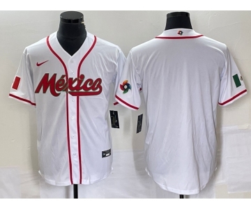 Men's Mexico Baseball Blank NEW 2023 White World Classic Stitched Jersey