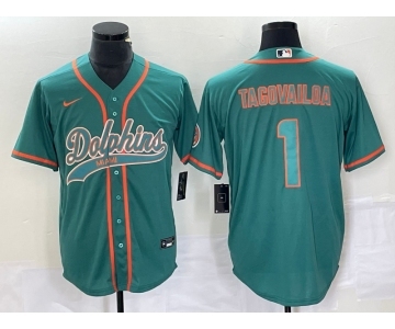Men's Miami Dolphins #1 Tua Tagovailoa Aqua Cool Base Stitched Baseball Jersey
