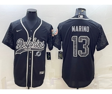 Men's Miami Dolphins #13 Dan Marino Black Reflective With Patch Cool Base Stitched Baseball Jersey