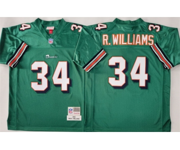 Men's Miami Dolphins #34 Ricky Williams Aqua Throwback Stitched Football Jersey