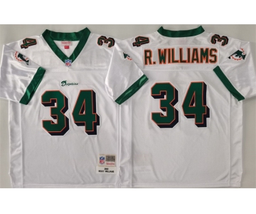 Men's Miami Dolphins #34 Ricky Williams White Throwback Stitched Football Jersey