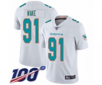 Men's Miami Dolphins #91 Cameron Wake White Vapor Untouchable Limited Player 100th Season Football Jersey