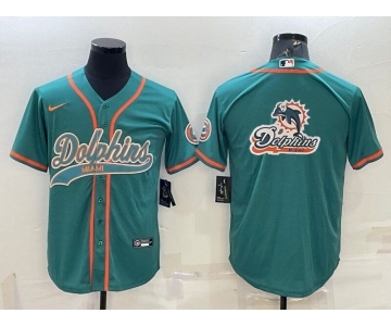 Men's Miami Dolphins Aqua Team Big Logo With Patch Cool Base Stitched Baseball Jersey