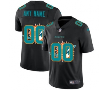Men's Miami Dolphins Custom Black Flocked Lightning Vapor Limited Football Jersey