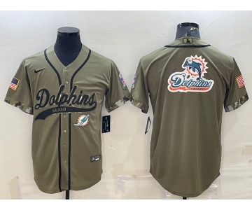Men's Miami Dolphins Olive Salute to Service Team Big Logo Cool Base Stitched Baseball Jersey