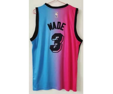 Men's Miami Heat #3 Dwyane Wade Authentic Blue Red Basketball Jersey 2020-2021 City Edition