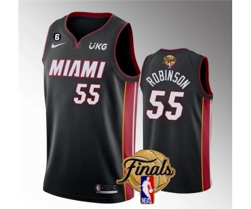 Men's Miami Heat #55 Duncan Robinson Black 2023 Finals Icon Edition With NO.6 Patch Stitched Basketball Jersey