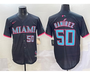 Your Position: Home>NIKE MLB Jerseys>Miami Marlins>Men>Men's Miami Marlins #50 Agustín Ramírez Black 2025 City Connect Limited Stitched Baseball Jersey