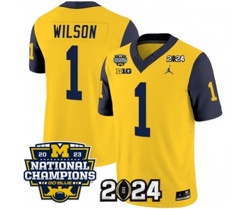 Men's Michigan Wolverines #1 Roman Wilson Yellow Navy 2024 F.U.S.E. With 2023 National Champions Patch Stitched Jersey