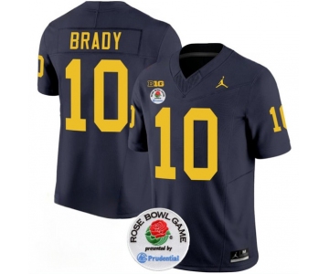 Men's Michigan Wolverines #10 Tom Brady 2023 F.U.S.E. Navy Blue Rose Bowl Patch Stitched Jersey