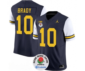 Men's Michigan Wolverines #10 Tom Brady 2023 F.U.S.E. Navy White Rose Bowl Patch Stitched Jersey