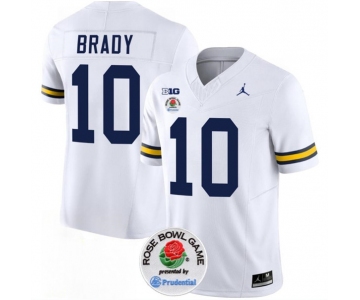 Men's Michigan Wolverines #10 Tom Brady 2023 F.U.S.E. White Rose Bowl Patch Stitched Jersey