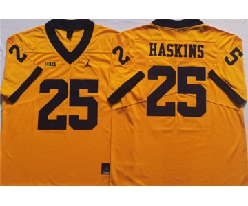 Men's Michigan Wolverines #25 HASKINS Yellow Stitched Jersey