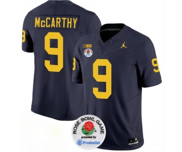 Men's Michigan Wolverines #9 J.J. McCarthy 2023 F.U.S.E. Navy Blue Rose Bowl Patch Stitched Jersey