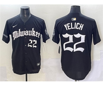 Men's Milwaukee Brewers #22 Christian Yelich Black 'Gothic 414 Shadows Edition' Vapor Premier Limited Stitched Jersey