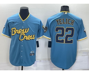 Men's Milwaukee Brewers #22 Christian Yelich Blue 2022 City Connect Cool Base Stitched Jersey