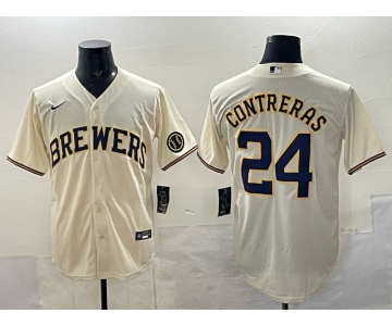 Men's Milwaukee Brewers #24 William Contreras Cream With Patch Stitched Baseball Jersey