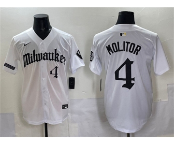 Men's Milwaukee Brewers #4 Paul Molitor White 'Gothic 414 Shadows Edition' Vapor Premier Limited Stitched Jersey