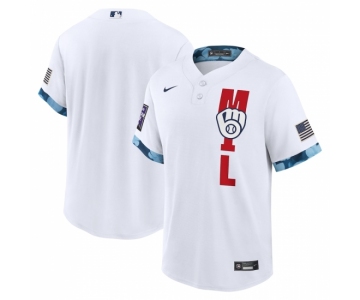 Men's Milwaukee Brewers Blank Nike White 2021 MLB All-Star Game Replica Jersey