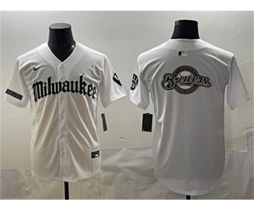 Men's Milwaukee Brewers Team Big Logo White 'Gothic 414 Shadows Edition' Vapor Premier Limited Stitched Jersey