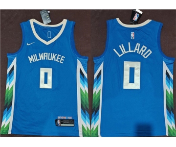 Men's Milwaukee Bucks #0 Damian Lillard Blue 2022-23 City Edition Stitched Basketball Jersey