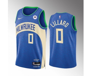 Men's Milwaukee Bucks #0 Damian Lillard Blue 2023-24 City Edition Stitched Basketball Jersey
