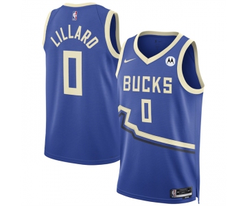 Men's Milwaukee Bucks #0 Damian Lillard Royal 2024 City Edition Stitched Basketball Jersey