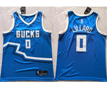 Men's Milwaukee Bucks #0 Damian Lillard Royal 2024 City Edition Stitched Basketball Jersey