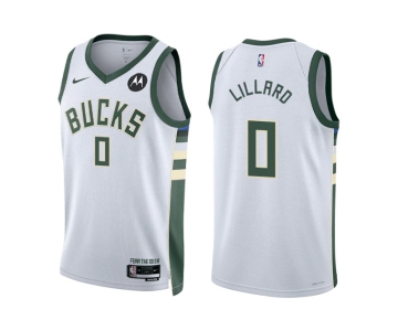 Men's Milwaukee Bucks #0 Damian Lillard White Stitched Basketball Jersey