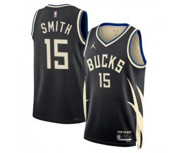 Men's Milwaukee Bucks #15 Tyler Smith Black 2024 Draft Statement Edition Stitched Basketball Jersey