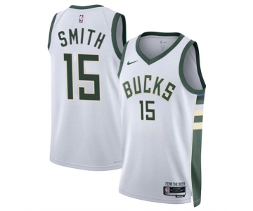 Your Position: Home>NBA Jerseys>Milwaukee Bucks>Men Jerseys>Men's Milwaukee Bucks #15 Tyler Smith White 2024 Draft Association Edition Stitched Basketball Jersey