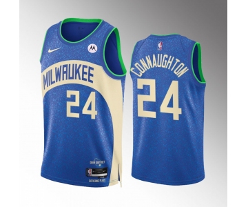 Men's Milwaukee Bucks #24 Pat Connaughton Blue 2023-24 City Edition Stitched Basketball Jersey