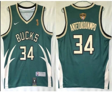 Men's Milwaukee Bucks #34 Giannis Antetokounmpo Green Nike Swingman 2021 Champions Earned Edition Stitched Jersey
