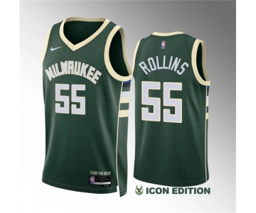 Men's Milwaukee Bucks #55 Ryan Rollins Green Icon Edition Stitched Basketball Jersey