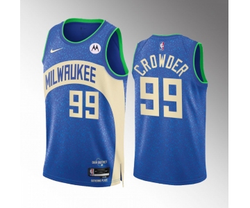 Men's Milwaukee Bucks #99 Jae Crowder Blue 2023-24 City Edition Stitched Basketball Jersey