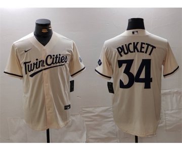 Men's Minnesota Twins #34 Kirby Puckett Cream Cool Base Stitched Baseball Jersey