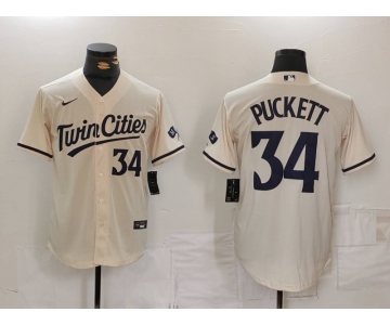 Men's Minnesota Twins #34 Kirby Puckett Number Cream Cool Base Stitched Jersey