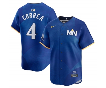 Your Position: Home>NIKE MLB Jerseys>Minnesota Twins>Men>Men's Minnesota Twins #4 Carlos Correa Royal 2024 City Connect Limited Stitched Baseball Jersey