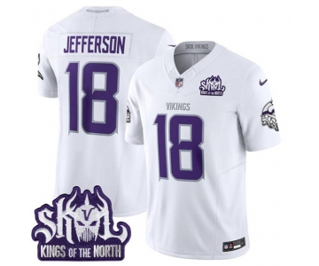 Men's Minnesota Vikings #18 Justin Jefferson White 2025 F.U.S.E. Winter Warrior Skol Patch Vapor Limited Football Stitched Jersey