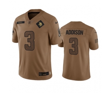 Men's Minnesota Vikings #3 Jordan Addison 2023 Brown Salute To Service Limited Football Stitched Jersey
