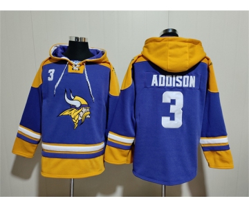Men's Minnesota Vikings #3 Jordan Addison Purple Yellow Ageless Must-Have Lace-Up Pullover Hoodie