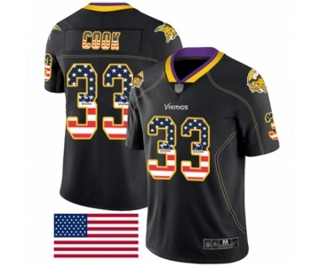 Men's Minnesota Vikings #33 Dalvin Cook Limited Black Rush USA Flag Football Jersey