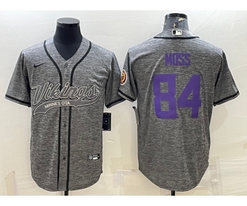 Men's Minnesota Vikings #84 Randy Moss Grey Gridiron With Patch Cool Base Stitched Baseball Jersey