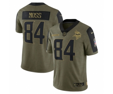 Men's Minnesota Vikings #84 Randy Moss Nike Olive 2021 Salute To Service Retired Player Limited Jersey