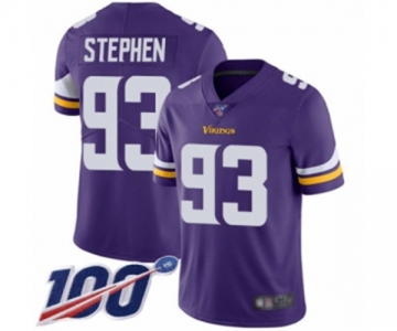 Men's Minnesota Vikings #93 Shamar Stephen Purple Team Color Vapor Untouchable Limited Player 100th Season Football Jersey