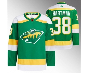 Men's Minnesota Wild #38 Ryan Hartman Green 2022-23 Reverse Retro Stitched Jersey
