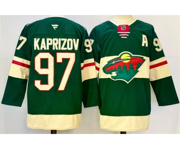 Men's Minnesota Wild #97 Kirill Kaprizov Green 2024-25 With Patch Home Stitched Hockey Jersey